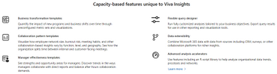 With the new licensing model for Viva Insights replacing WpA SKU https://www.microsoft.com/en-us/microsoft-viva/buy-insights https://www.microsoft.com/en-us/microsoft-viva/buy-insights-capacity How do we trace/track the actual usage of "Capacity-based features"? Do we have a table to list how many units per advance features etc such that we could plan properly whether we would need the add-on or not?VI_MigrationOct 21, 2021Silver Contributor2.5KViews1like3CommentsJumpStart Office Hours?