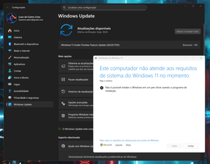 Problema ao instalar a versão Windows 11 Insider Preview Feature Update 26220.7051 no Windows 11.