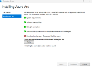 Hi everyone, two different things in one bucket: 1. user reports indidate issues the Arc Deployment using the new wizard might fail https://learn.microsoft.com/en-my/answers/questions/1660985/azure-arc-configuration-the-given-key-was-not-pres Error: The given key was not present in the dictonary 2. Download of Arc Connected Machine Agent fails I have tried to reproduce this today but even failed before the reported step Error: Could not download AzureConnectedMachineAgent.msi Has the link or redirector been changed? according to process monitor it is trying to reach an address that looks like an attestation address, but no public IP. Feedback hub link and more logs https://aka.ms/AAq9t0mSolved1.8KViews0likes5Commentsb26085 - Windows Server 2025 Domain Controller fail to deploy via DSC