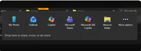 In the latest version of Windows File Explorer (with the tabbed interface), when I try to drag a file to another tab at the top of the screen, a "Share" action bar automatically pops up at the top of the window. This pop-up completely blocks the title area of the target tab, making it impossible for me to successfully complete the drag-and-drop operation, severely impacting the efficiency of managing files between multiple tabs. I have confirmed that this is not a feature of any third-party software but a built-in system behavior. My question is: Is there a way to permanently disable or remove this specific "Share" pop-up bar through system settings, Group Policy, or Registry editing, in order to restore a smooth drag-and-drop experience? If this is a known design introduced in Windows 11 22H2 or later versions, please also let me know if there is an official feedback channel.TrappJeanMar 02, 2026Silver Contributor1.4KViews1like6Comments
