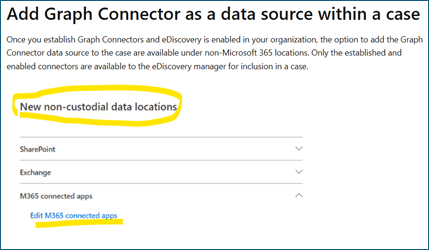 However, in the next step, while creating an eDiscovery case (Premium), we don't see "Add Graph Connector as a data source within a case" to add the above graph connector. What are we missing?