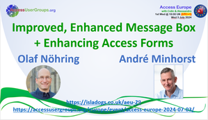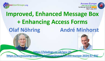 Access Europe - Wed 3 July: Improved, Enhanced Message Box / Enhancing Access forms