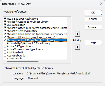 - Add "Microsoft ActiveX Data Objects 6.1 Library"