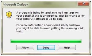 When sending email (through Outlook) in MS Access VBA using DoCmd.SendObject I keep getting the "Allow / Deny" Dialogue window for each and every email. I want to send multiple emails programma...