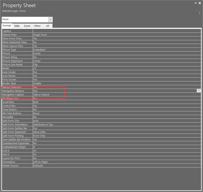- You may also want to remove the record selecter from the left side of the form. This is also managed from the form property sheet
