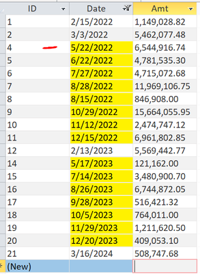 First, to be clear, the screen shot shows TWO sections with yellow highlights, one for the coming month of May, 2022 and the other for dates between May, 2023 and December, 2023. That doesn't square up with what your description seems to specify.