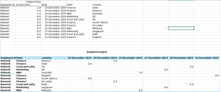 I have data in columns and want to convert them into rows as per the screenshot below. name field is one example; there are multiple other fields like department and entity should also aligned i...