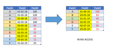 I have a table containing 3 fields, say Field1, Field2 and Field3. Want to make summary table where for every unique Field1, find the value of Field3 when Field2 is Maximum. Attached tables here. ...