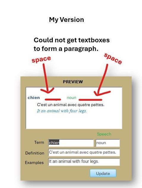 I did make an attempt. The image below titled "My Version" clearly shows where I fell short. Yes, I maintained the text box formatting, but I was not able to get the text boxes to form a coherent paragraph. I also tried string concatenation, but that method does not preserve any of the text boxes' formatting.