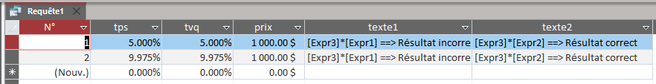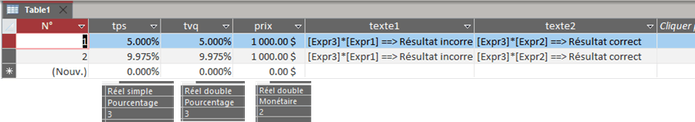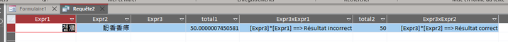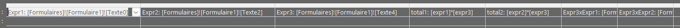 - When I retrieve data from a query that is in a form, the display of that data is not correct (see the fifth image). However, the data collected is good, since calculations made with them are correct, it is only the display of the query that is in question.