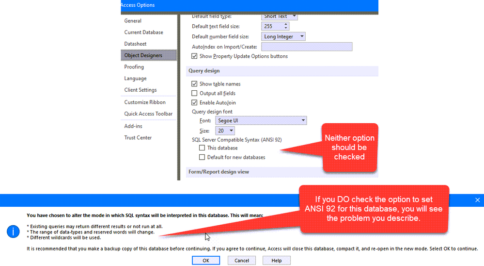 This is the first time I am working in queries. What do you mean by uncheck that option in a normal accdb. I am to do what.