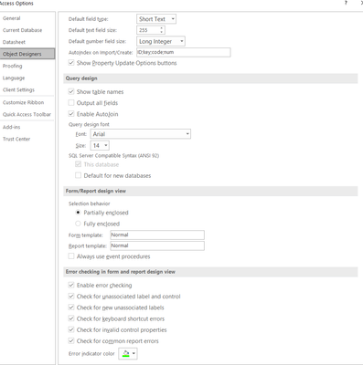 What is it that you are asking me to do regarding - to ensure that this is an accdB, not an accdE? I went back into options and I noticed the SQL greyed out box with a check no longer has a check.