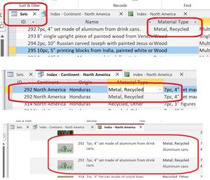 I have an Access database to catalog a collection. In the table "Sets", there is a column that "Material Type" that links to another table (Materials.ID). Material Type allows multi-selection to su...