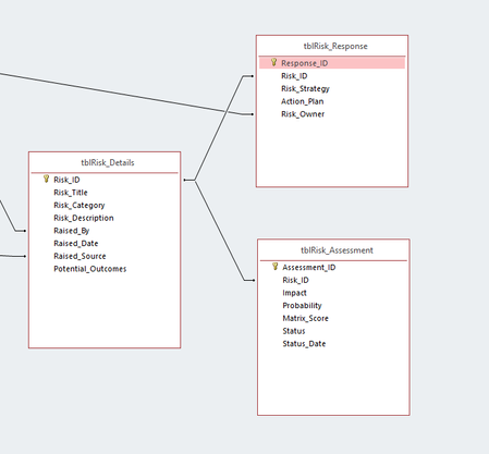 How about subreports (linked to the main report via the Risk_Id field) where you display the Response and Assessment records. This would allow you to control the placement and order in the report as desired.