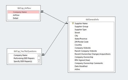 Hi everyone, I have 3 tables: tblGeneralInfo, tblCap_Airflow, and tblCap_Yes/NoQuestions and a form with 2 buttons: Airflow and DER Repairs. Here are the relationships: The Airflow co...