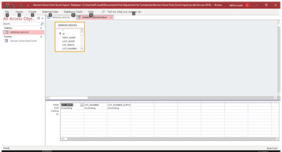 Daniel (et al) thanks for getting back to me. I have database to be able to inventory cemeteries. The database was imported from excel and it was originally exported to excel from Alpha 5 another database program.