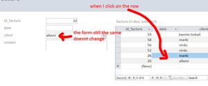 soufiane91 If it is a subform in a main form, then YOU have to fire some code to requery the main form and set focus to the record selected in the subform. If you do it the other way around, and if the Master/Child Linking fields are properly set, then selecting a record in the main form WILL requery the subform, though.