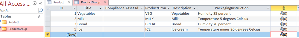 You can also change values in de ProductGroup table. Lets say we want to change the temperature instruction for Ice cream and set it to 20 degrees: