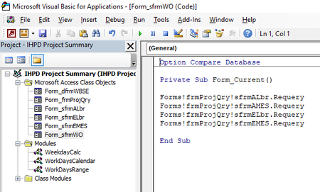 I have a Main Form "frmProjQry" that contains (6) subforms. One of the subforms, "sfrmEMES" is not refreshing so summary data (from sfrmEMES) is not updating in a Main Form Text Box. Other subforms...