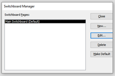 I created a Switchboard Manager as shown, it appeared in the forms panel as it should. However, I accidently deleted it from there, so I can no longer open the Main Switchboard. I am using Access 2019 with Microsoft 365.