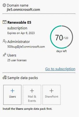 Microsoft 365 trial developer subscription Admin account prompt is locked.