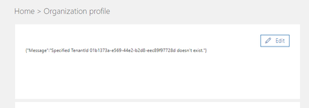 hello, I've created a tenant for testing purposes. I can't find my organization information within the admin portal. It shows: When I click edit it's not possible to enter these in...