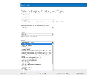 I'm trying to submit a Premier Support ticket for an issue I'm having in the Admin Center regarding adding a custom tile. When I choose O365 as the product, there is no applicable version to choose ...