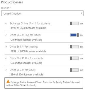 Unable to assign Exchange Online Advanced Threat Protection trial licenses to users?