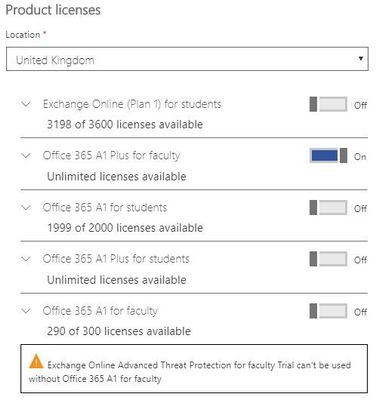 I've activated the free trial of ATP for faculty so that I can understand how it works. The trial comes with 25 user licenses, but I can't assign any of those licenses to users? For users with A1 plus licenses, under product licenses, it states that it can't be used without Office 365 A1 for faculty.