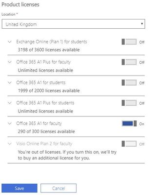 However, if I try the same process with a user who does have Offce 365 A1 license (not Plus), there is no option to assign the license?