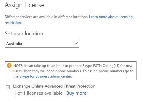 Unable to assign Exchange Online Advanced Threat Protection trial licenses to users?