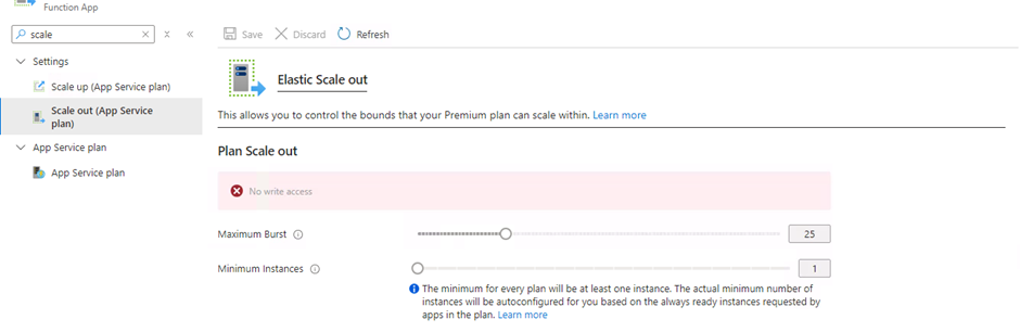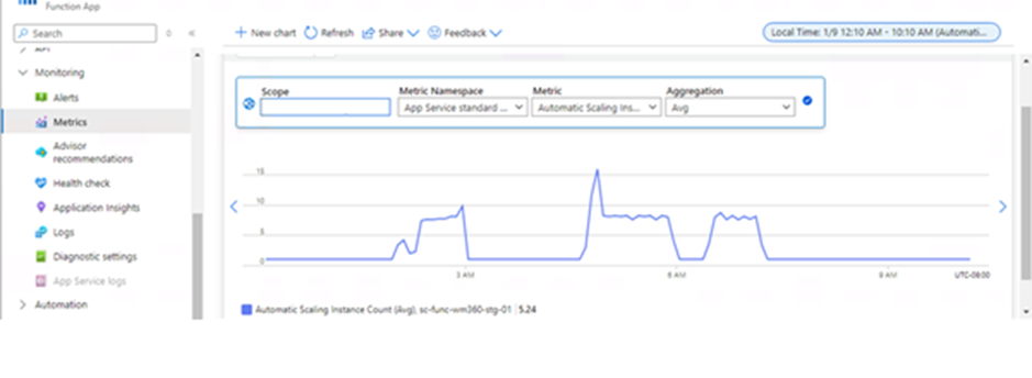 Configure your Azure Functions to scale out efficiently. Use the Azure Functions Premium Plan or Dedicated (App Service) Plan for better scaling options and resource allocation.