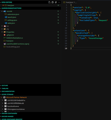- RobinaFeb 05, 2023MCTA class containing the new functions is added to the project. Visual Studio Code also adds the storage account connection string to local.settings.json and a reference to the Microsoft.Azure.WebJobs.Extensions.DurableTask NuGet package to the .csproj project file.