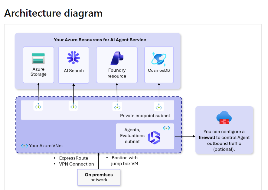 The private endpoint subnet acts as a secure bridge between the agent and the underlying Azure services. At the same time, the client has full control over the network, including the option to apply firewall rules to manage outbound traffic.