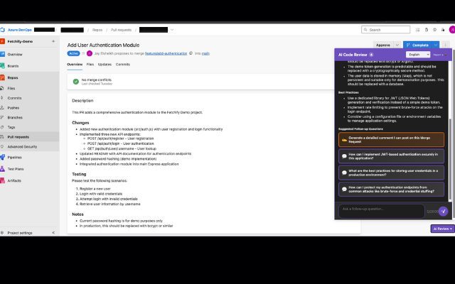 While it’s designed to help with PRs, because it works as an overlay in the browser, you can use it to analyze diffs and ask questions about code on any screen where code is visible in Azure DevOps. It also lets you run local LLMs (like Llama 3 via Ollama) so your code stays private/local, which solves the security concern of sending code to external AI bots.