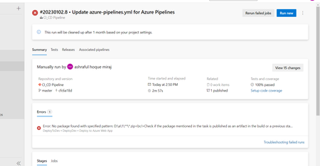 I am creating a CI/CD pipeline using YAML to deploy the app to the Azure App Service. In the build process, my artifact is built and published but in deployment, I get an error called: ##[error]Erro...