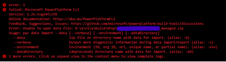 Azure DevOps Power Platform Import Data - Error: Unable to open data file
