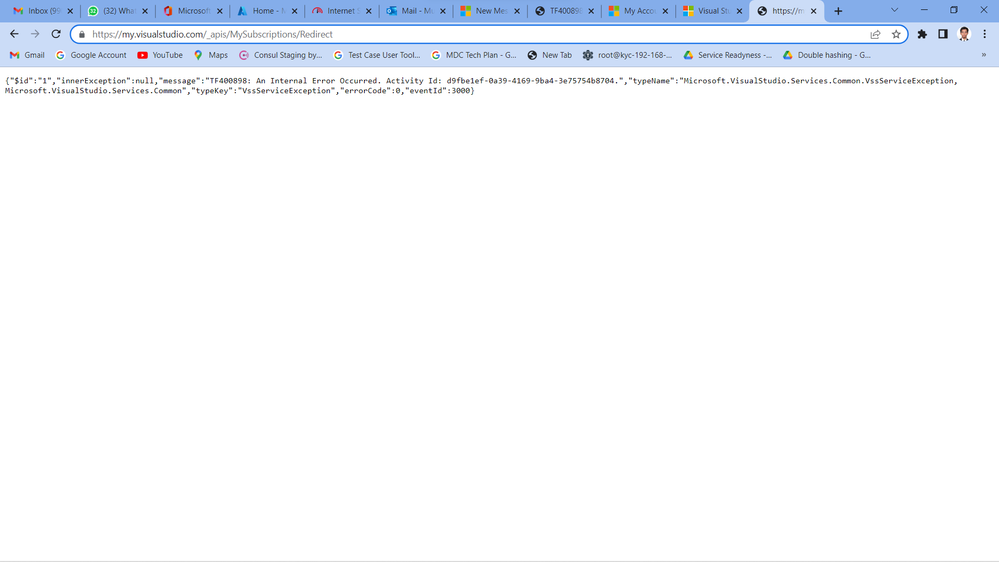 I also tried login to https://my.visualstudio.com it shows same error code 500 (TF400898)