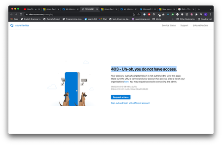 I have a problem with Azure DevOps. When I accessed my organization with owner permission, I received the message '403 - Uh-oh, you do not have access.' Has anyone been to solve this problem ? Please...