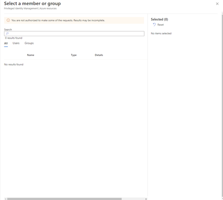 Can't assign any users to a role for a resource group.