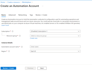 Hello All - fairly New to Azure .... I'm trying to create an Automation Account for one of my clients. When I select Create a Resource > Automation > Create instead of getting to the Create an Automa...