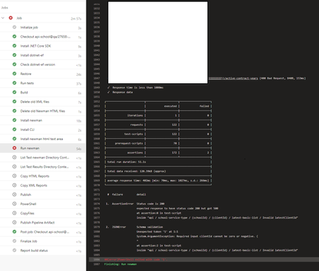 script: 'newman run $(System.DefaultWorkingDirectory)/test/postman_collection.json -r htmlextra --reporters cli,htmlextra,junit --reporter-junit-export $(System.DefaultWorkingDirectory)/test/Results/junitReport.xml --reporter-htmlextra-export $(System.DefaultWorkingDirectory)/test/report/TestReport.html --bail false'