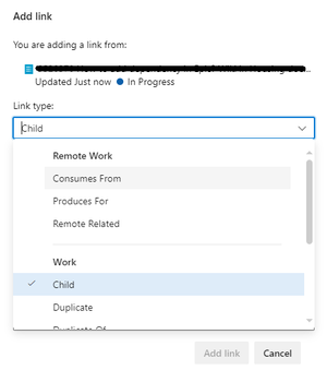 I open a Work Item, try to add a link of another Work Item to it. When we click on Add link, and then select Existing item, in the pop-up we see a drop-down called Link type. In the drop-down, t...
