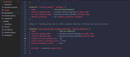 Hello, i have two folders, one for connectivity subscription and the second for identity subscription. How to configure the peering between the vnet of connectivity and the vnet of identity ?...