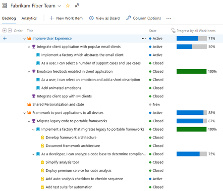 - Enable rollup columns to show progress bars for epics and user stories.