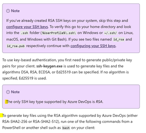 Have a question regarding azuredevops limitation to use RSA tokens with 256 or 512 for ssh connections. These keys are deprecated and subjected to security risks. The limitation I am talking about is...