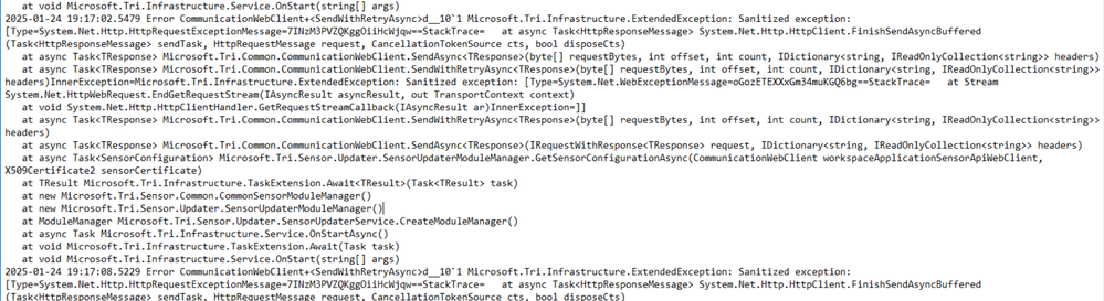 The sensor process is blocked from communicating with the sensor backend service via TLS/443.