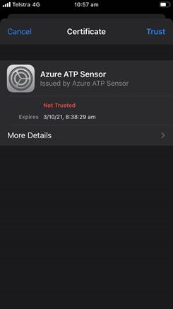 We have an instance where when users are connecting to the Corp Wifi they are being prompted on the devices to install/trust a Certificate labeled "Azure ATP Sensor" - the details in the certificate ...