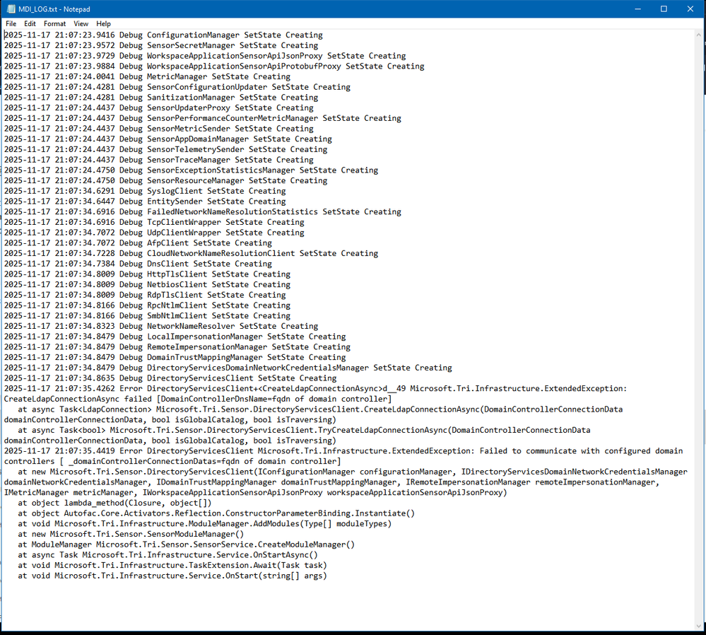 Hello, i've installed MDI on all of our domain controllers and everything went fine. I am trying to install MDI our Entra connect server and our certificate authority server (which are not domain controllers) and the service is continually failing to start. Could someone please point me in the right direction on how to rectify this? I've tried: