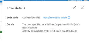 ADF Lookup activity - Issue with the user